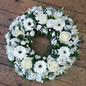 Wreaths are a very traditional tribute to send to a funeral they are a circular shaped design with a hole in the middle. They can be based or covered in mixed flowers and even pesonalised to a team.